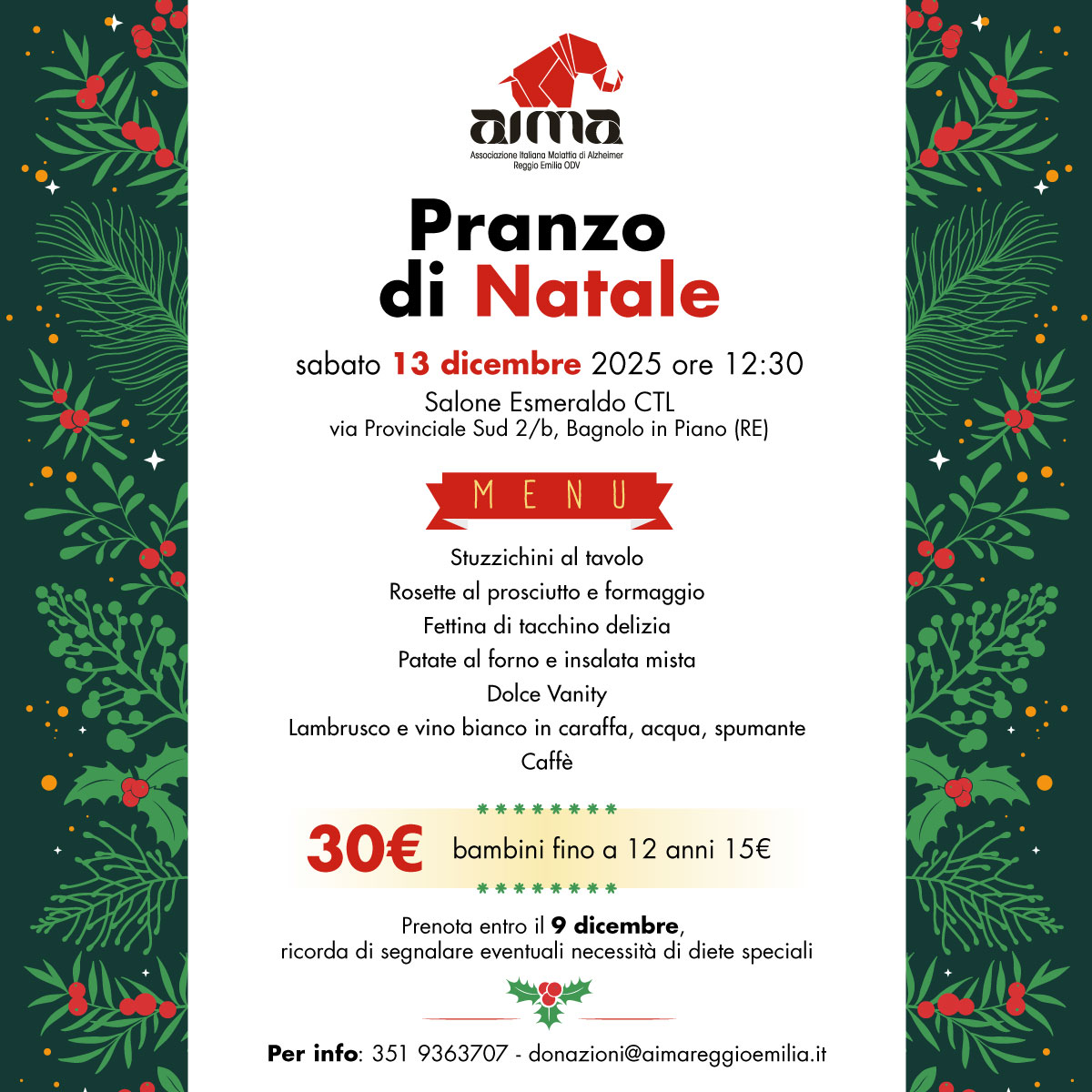 Torna il tradizionale appuntamento con il Pranzo di Natale di AIMA Reggio Emilia ODV!